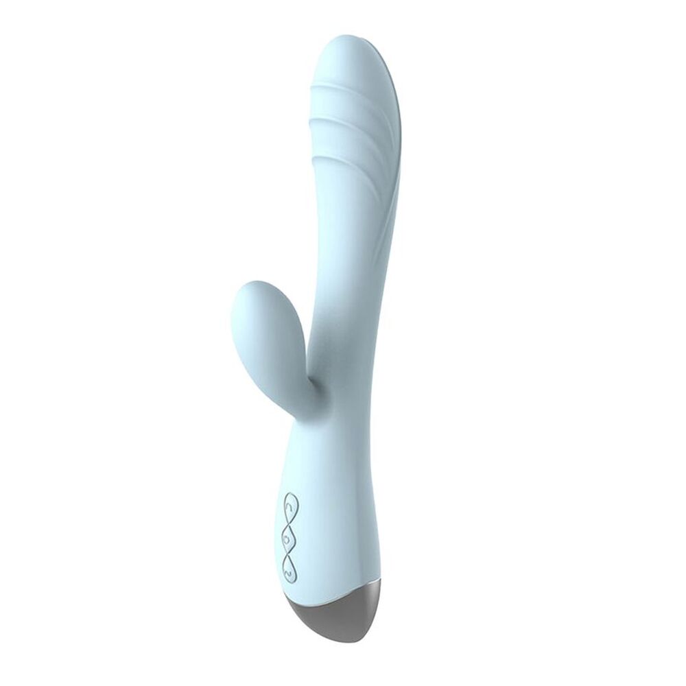 Vibrador ponto G com estimulador clitoriano e relevos massageadores na ponta. Possui toque suave, aveludado e detalhes metalizados.