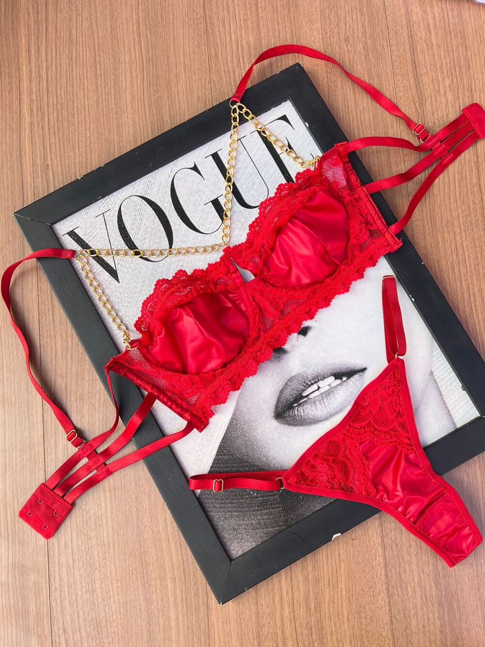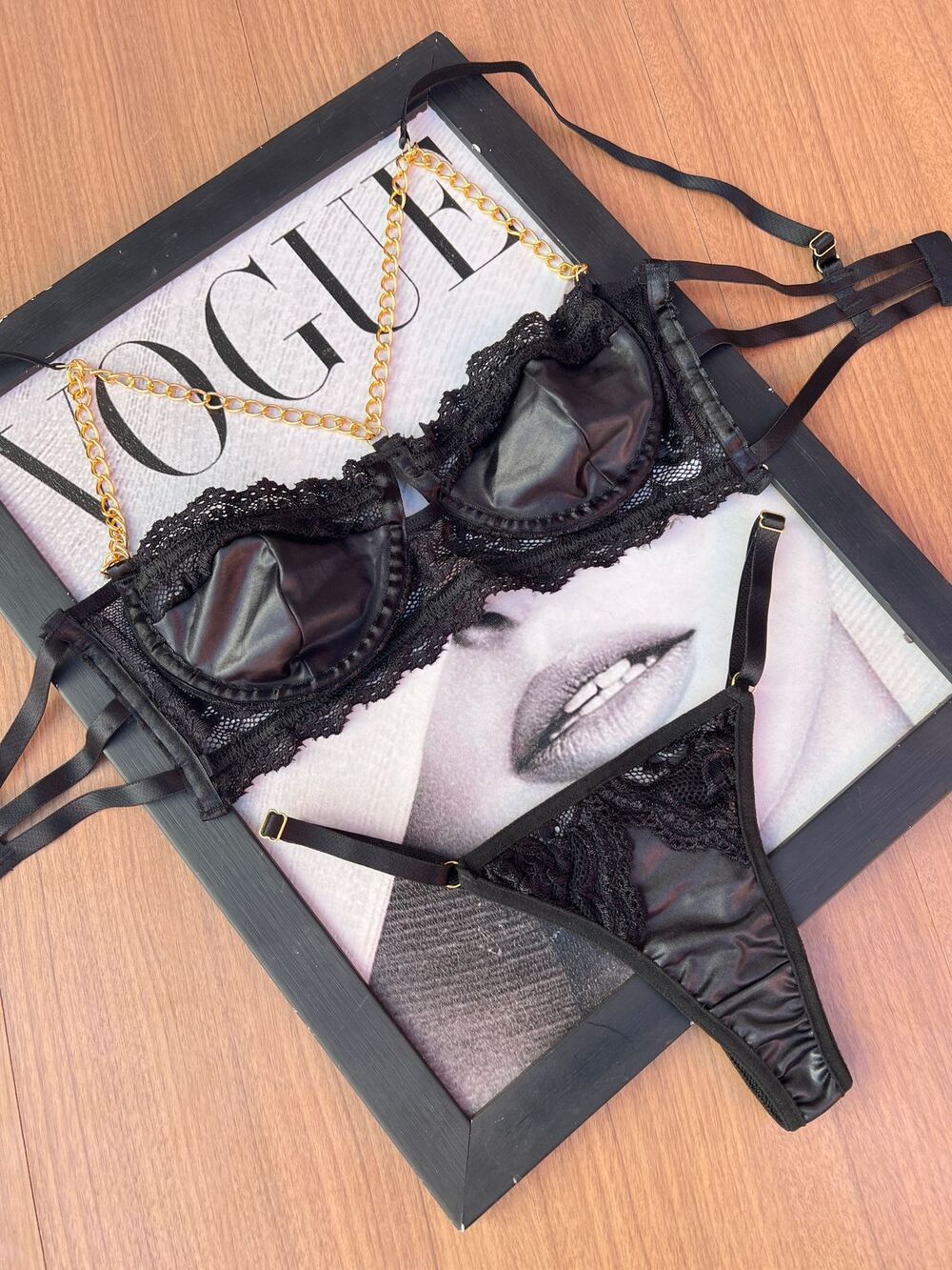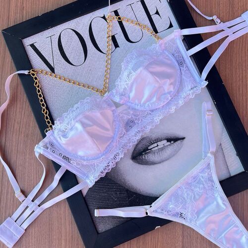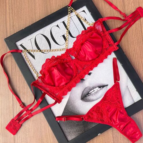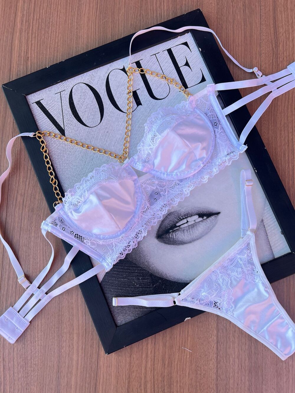 Personalidade beleza e sedução é o nome dessa lingerie, Tecido cirrê, com detalhes em corrente no busto, nas costas triplo viés e chamosas tiras de elástico que decham ela mais sexy. perfeita muita sensualidade e beleza com aro, sem bojo, calcinha regulagem semi fio dental, cores neon intensas e vibrantes.